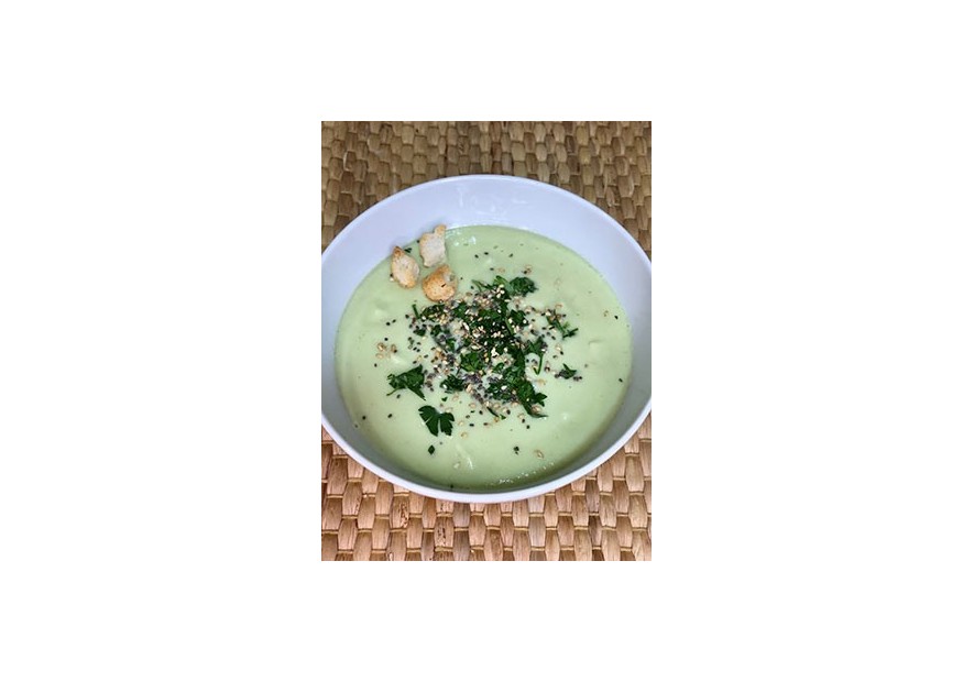 - Sirva inmediatamente decorado con perejil, semillas de chía, semillas de sésamo y picatostes.