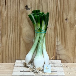 La Cebolla Tierna es blanca con los tallos verdes tiernos, fresca y jugosa, muy apropiada para platos de cocina primaveral, su época natural.